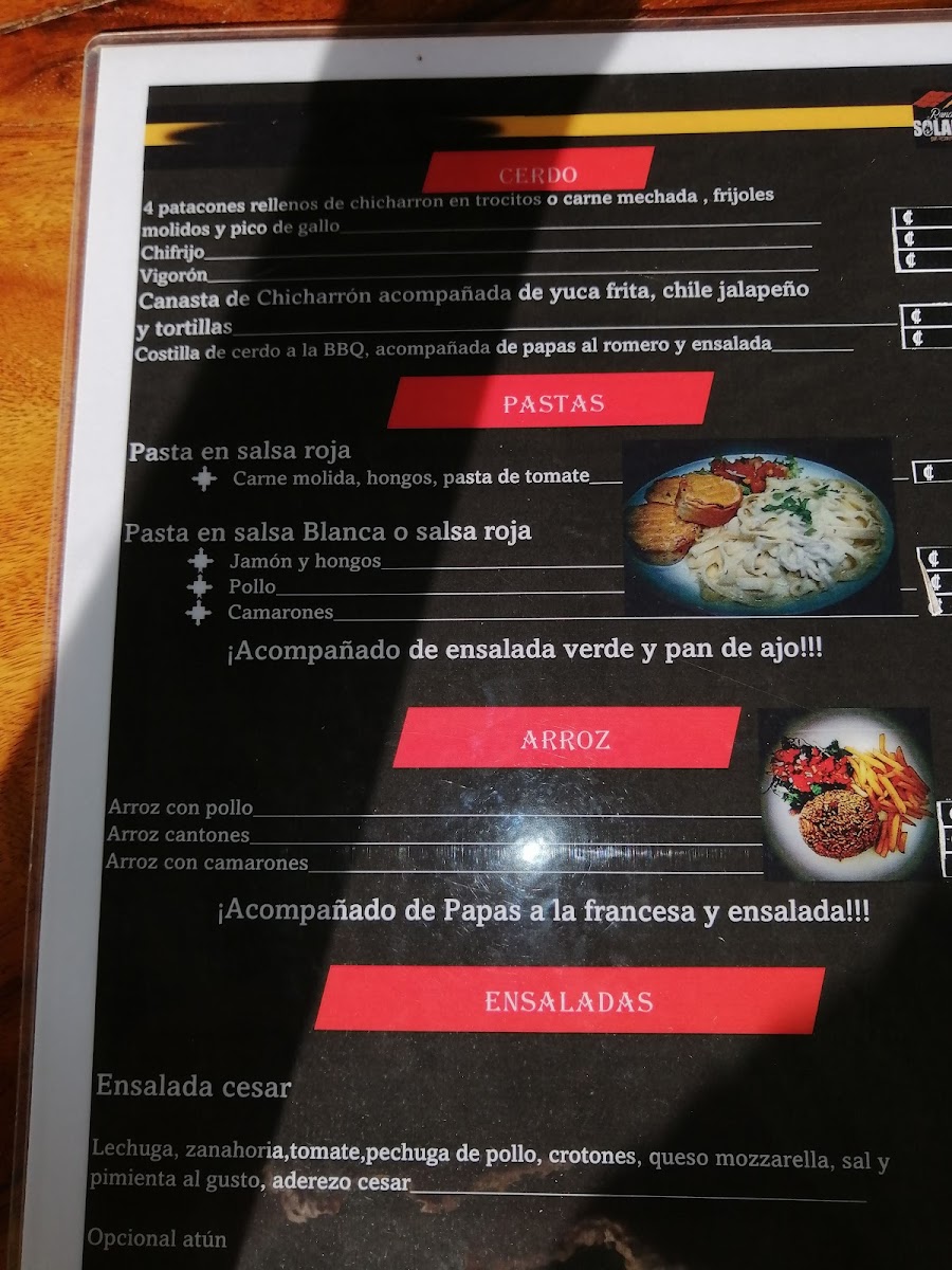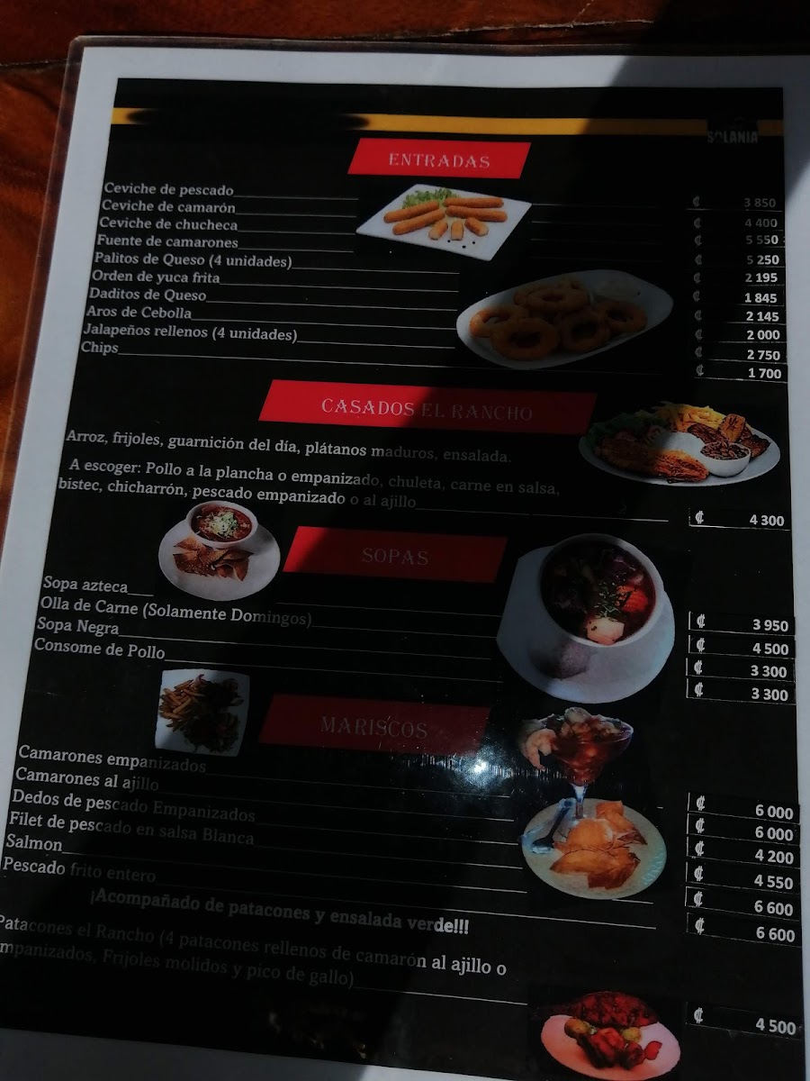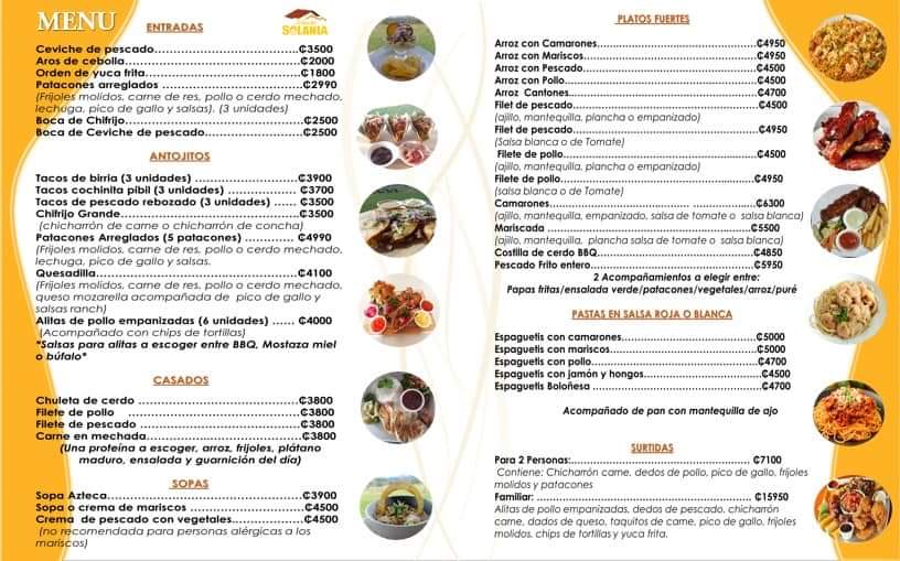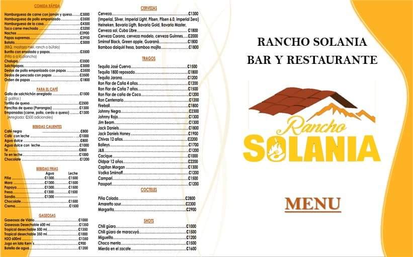 In addition to the food, the drink menu features refreshing cocktails like Mojitos and Pina Coladas, perfect for enjoying the warm Costa Rican weather. Whether you're here for a casual lunch or a special dinner, the menu at Bar Restaurante Rancho Solania ensures an authentic and flavorful dining experience, blending traditional Costa Rican ingredients with modern cooking techniques.